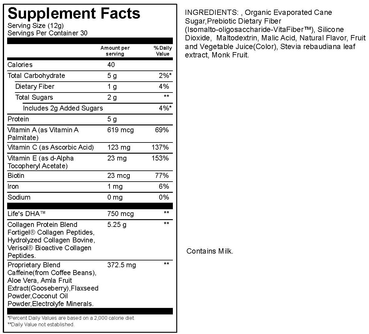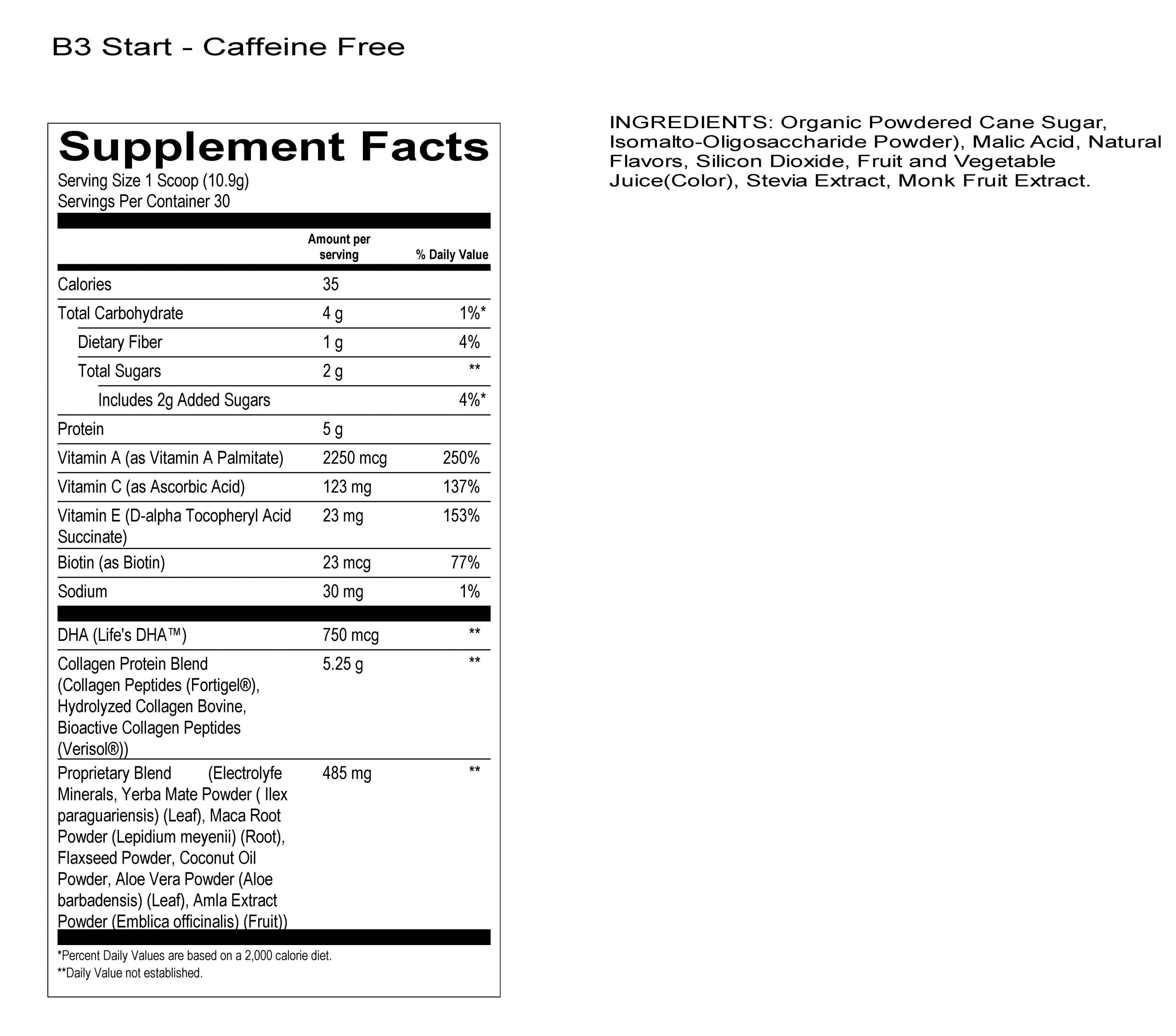 Start Caffeine Free Supplement Facts